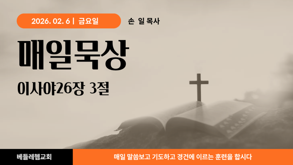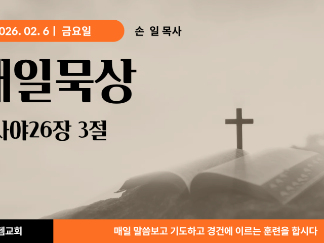 아침에 일어나면 우리 마음은 가장 먼저 오늘 할 일부터 생각납니다. 세상이 어떻게 돌아가는지 뉴스를 보기도 합니다. 뉴스 한 줄, 사람의 말 한마디, 아직 오지 않은 불투명한 미래도 마음을 출렁이게 합니다. 오늘 말씀은 그 흔들림 한가운데서 하나님이 주시는 아주 단순하고도 강력한 길을 보여 줍니다. 평강은 상황이 나아져서 오는 것이 아니라, 그것과 관계없이 마음이 한 곳에 고정될 때 주어집니다.