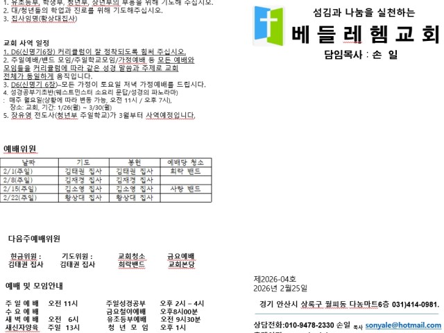 📝 교회주보(2026년2월1일)