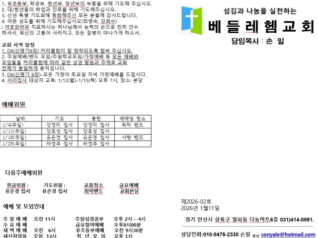 📝 교회주보(2026년1월25일)