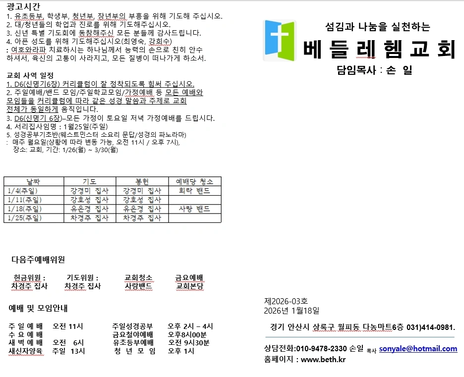 📝 2025년 11월 2일 주일 예배 순서 / 교회 소식 …