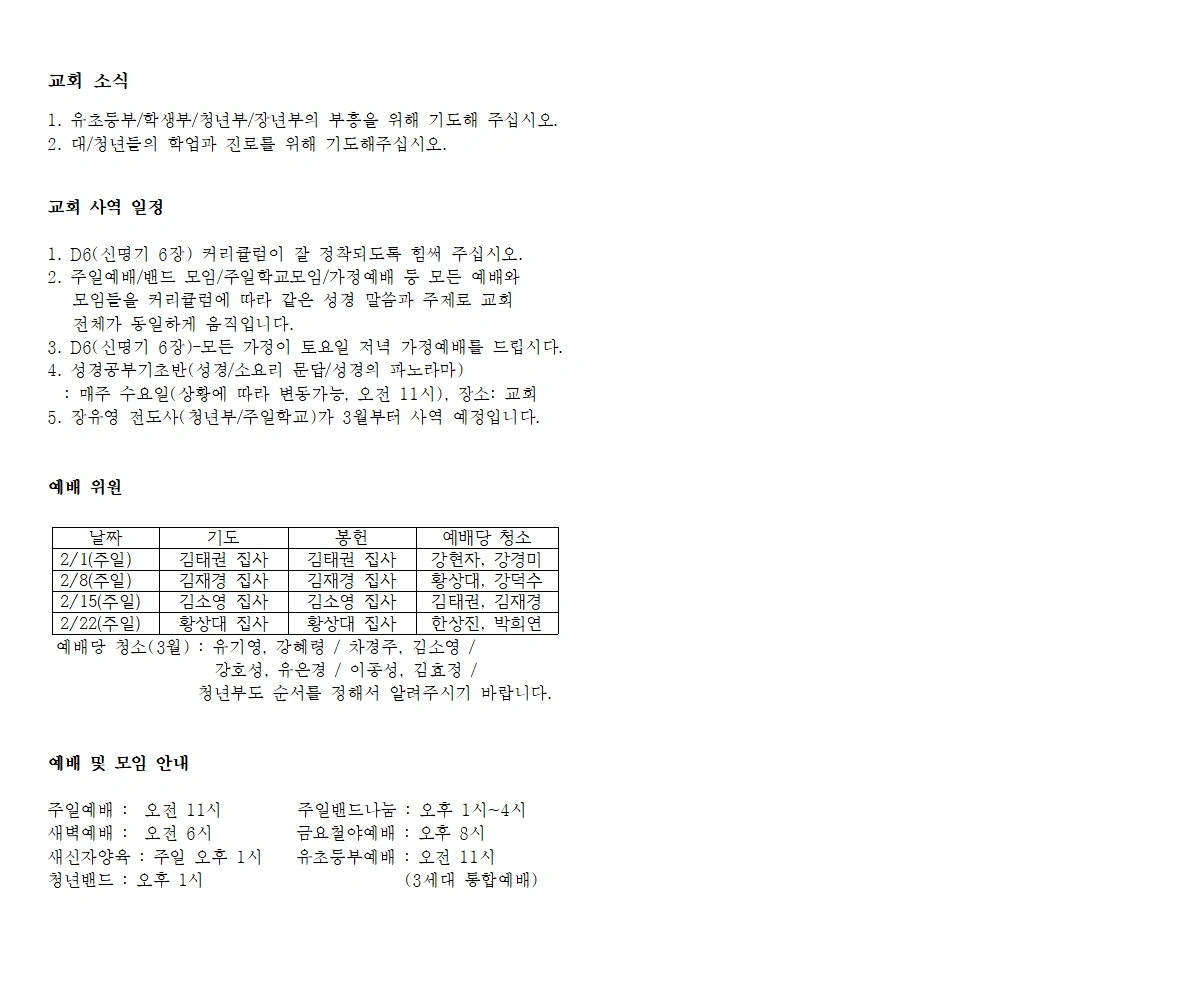 📝 교회주보(2026년2월1일)