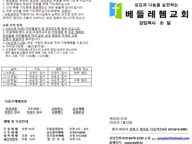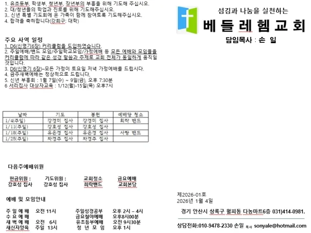📝 교회주보(2026년1월25일)