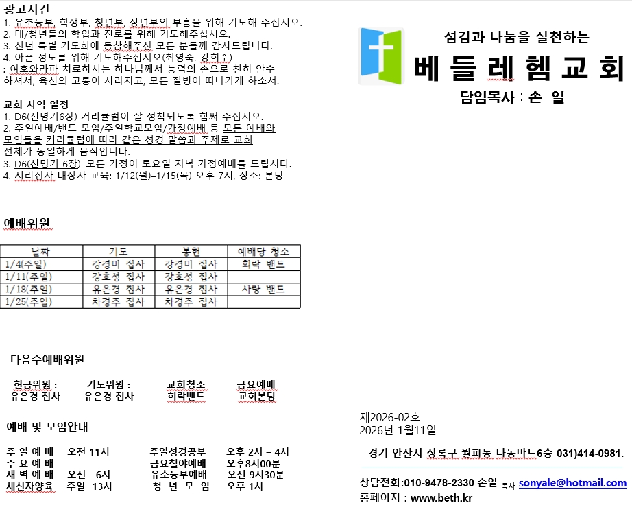 📝 2025년 11월 2일 주일 예배 순서 / 교회 소식 …