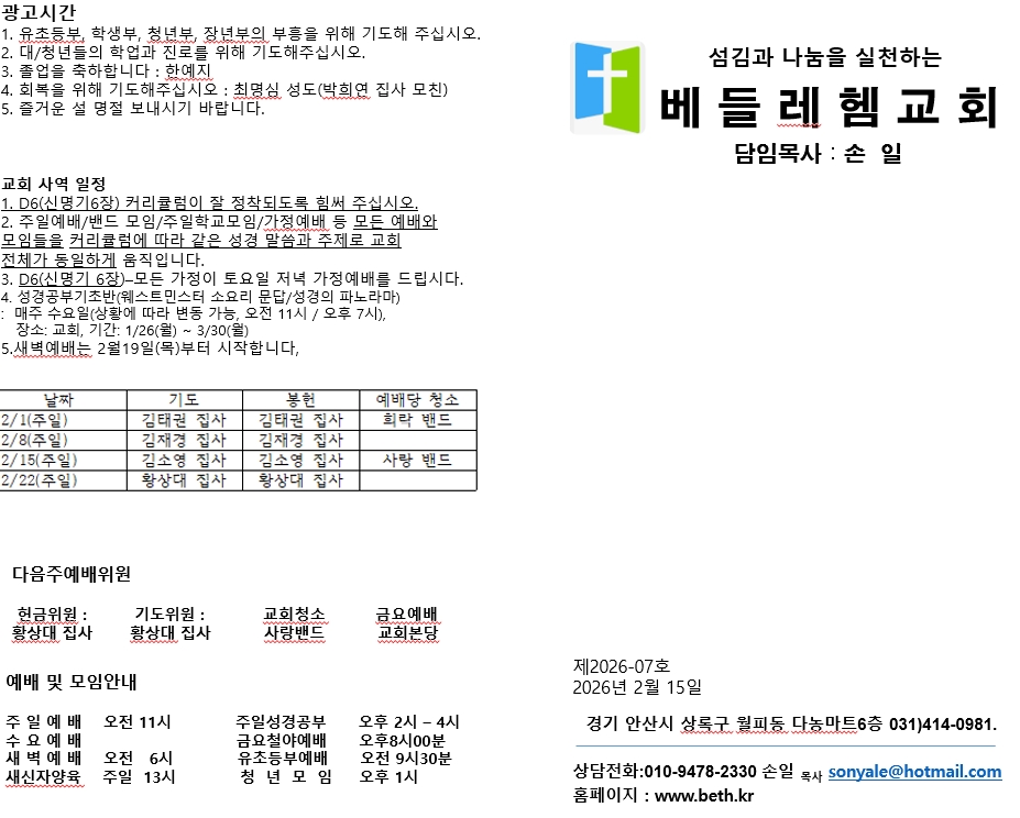 📝 교회주보(2026년2월15일)